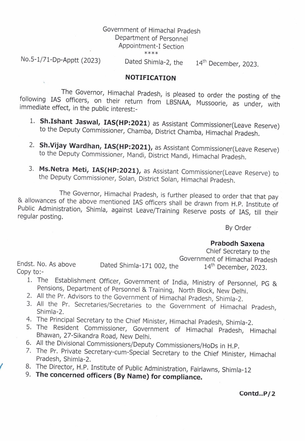 3 IAS को मिली पोस्टिंग, अधिसूचना देखें……