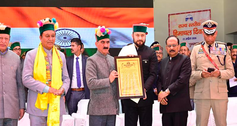 मुख्यमंत्री ठाकुर सुखविन्द्र सिंह सुक्खू ने आज यहां हिमाचल दिवस के उपलक्ष्य पर हिमाचल की विभूतियों को राज्य स्तरीय पुरस्कार-2026 से सम्मानित किया। मुख्यमंत्री ने विभिन्न क्षेत्रों में हिमाचल का नाम रोशन करने एवं उल्लेखनीय सेवाओं तथा कार्यों के लिए सिविल सर्विसिस अवॉर्ड, प्रेरणा स्रोत सम्मान और हिमाचल गौरव पुरस्कार से नवाजा। उपायुक्त मंडी अपूर्व देवगन को विभागीय/संस्थान श्रेणी में और डिजिटल प्रौद्योगिकी एवं गवर्नेंस विभाग को विभागीय/संस्थान श्रेणी में एवं उप-मंडलाधिकारी (नागरिक) बल्ह, जिला मंडी की स्मृतिका नेगी को व्यक्तिगत श्रेणी में सिविल सर्विसिस अवार्ड से सम्मानित किया गया।