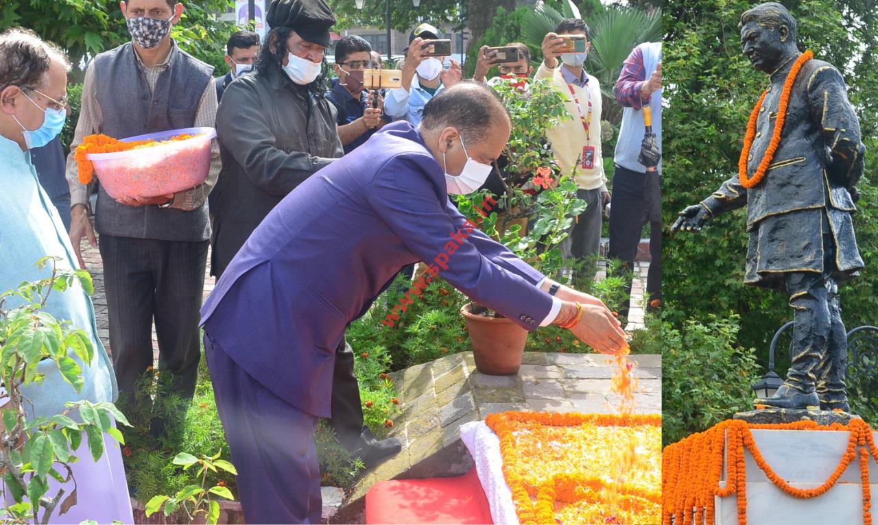 मुख्यमंत्री जय राम ठाकुर ने हिमाचल निर्माता और प्रदेश के पहले मुख्यमंत्री डाॅ. वाई एस परमार की 115वीं जयंती पर आज यहां रिज पर स्थित उनकी प्रतिमा पर पुष्पाजंलि अर्पित की।
