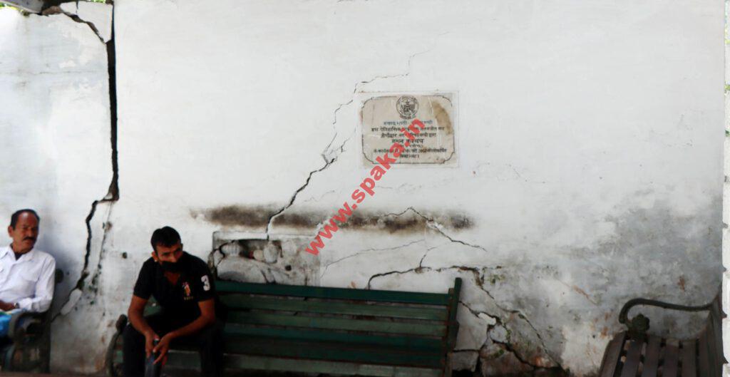 फोटो: जैंचू नौण पर बना रेनशैल्टर जिसकी दीवारों में दरारें साफ नजर आ रही हैं।