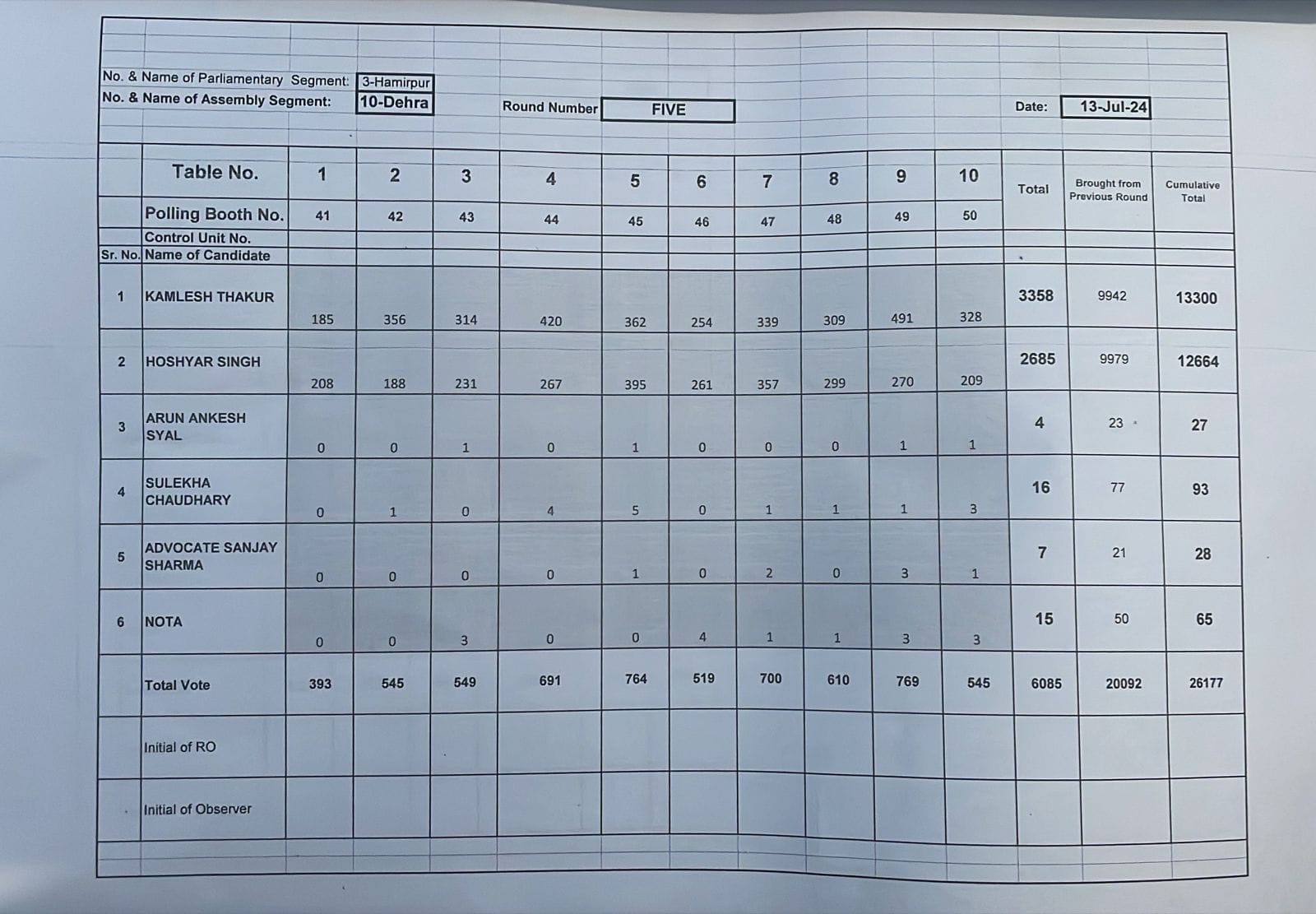 Dehra Bye-election After Round 5 Kamlesh Thakur Congress Lead- 636