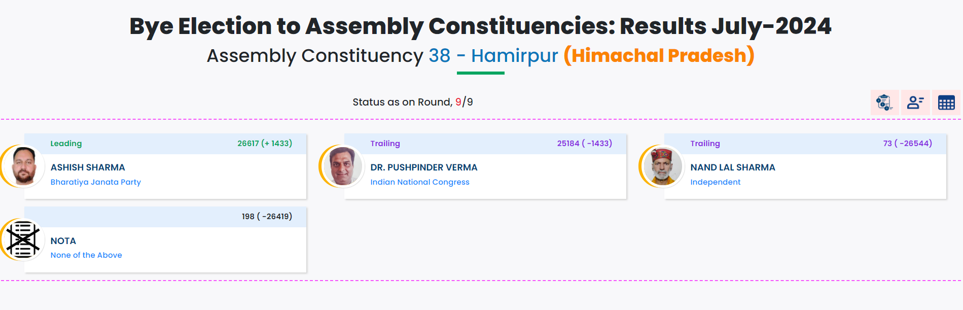 हमीरपुर से बीजेपी के आशीष शर्मा ने 1433 से जीत की हासिल ..