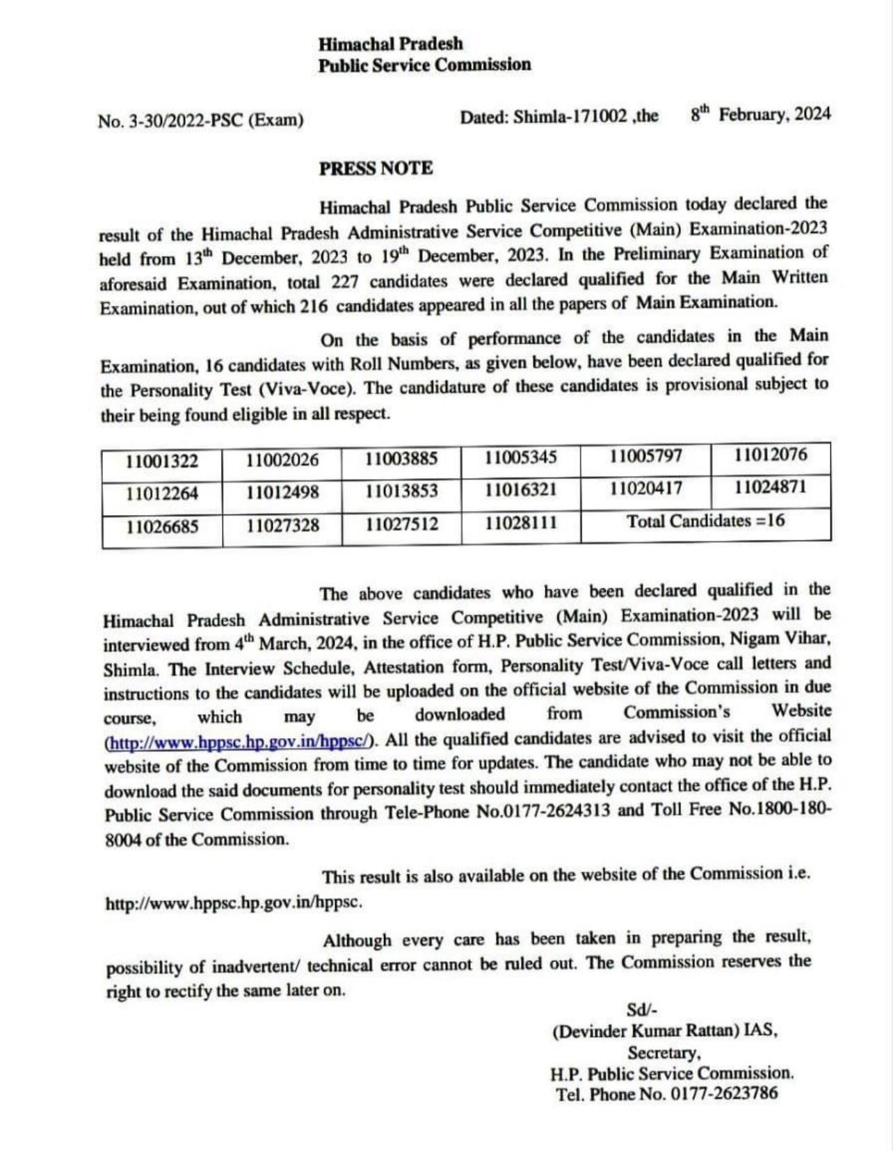 HAS की मुख्य लिखित परीक्षा का परिणाम घोषित
