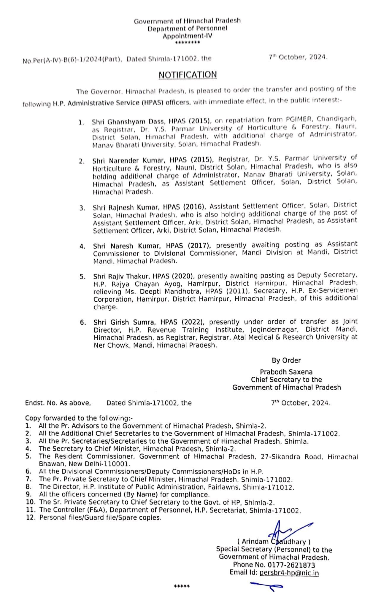 HAS अधिकारियों के तबादले,देखिए Notification