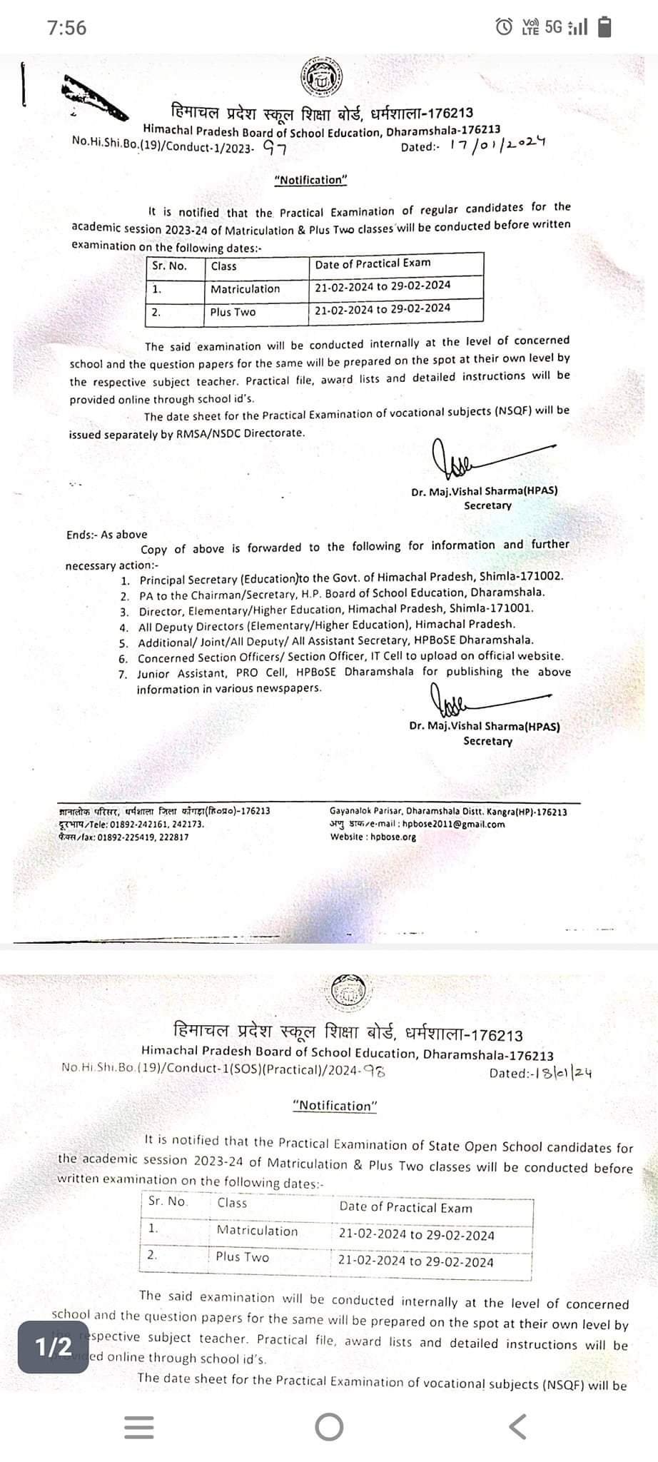हिमाचल प्रदेश स्कूल शिक्षा बोर्ड द्वारा प्रैक्टिकल डेट शीट जारी…