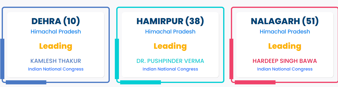 हिमाचल की तीनो Seets पर कांग्रेस की Leed