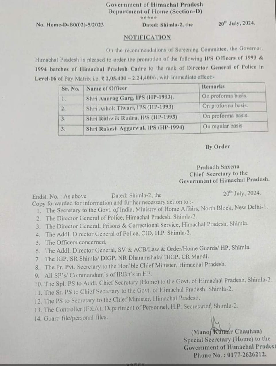 हिमाचल के चार IPS को Promotion…