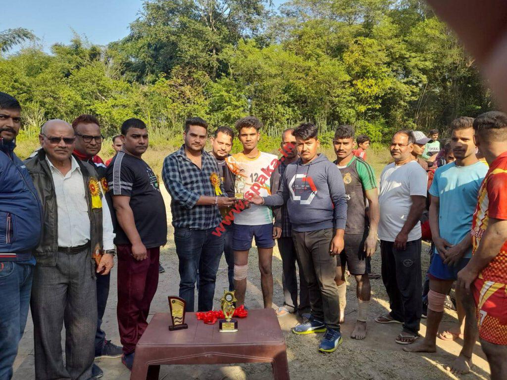 ज्वालामुखी : आज गुरेहड युवा क्लब के युवाओं द्वारा कबड्डी टूर्नामेंट करवाया गया जिसके फाइनल मुकाबले में भुम्पल टीम विजेता रही। साथ ही बोहल जागीर की टीम उपविजेता घोषित हुई। टूर्नामेंट के फाइनल मुक़ाबले में ग्राम पंचायत जखोटा के युवा प्रधान सुमित राणा व वार्ड मेंबर प्रीत मोहिंद्र जोगिंद्र सिंह ने बतौर मुख्यातिथि शिरकत की, वहीं विशेष तौर पर अशोक कुमार जसबीर सिंह, कपिल सिंह, कुलदीप सिंह, बलबीर सिंह, बहादुर सिंह, राजेश कुमार, सुमन कुमार मौजूद रहे। प्रधान सुमित राणा ने विजेता व उपविजेता टीम को ईनाम बांटे व बधाई दी, साथ में युवाओं को खेलों के प्रति प्रोत्साहित किया और उनके भविष्य के लिए शुभकामनाएं दी। इस दौरान युवा क्लब मेम्बर अभय राणा, रिशु, अक्षय राणा, मनीष कुमार, जतिन, नवू, लड्डू(आर्यन), अंकु, आदित्य(दितू), पम्मु, मन्नी, अंशुल, सूरज, साहिल, मिंटू भी उपस्थित रहे।