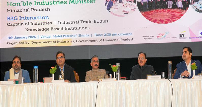मुख्यमंत्री ठाकुर सुखविन्द्र सिंह सुक्खू ने उद्योग विभाग द्वारा आयोजित तीन दिवसीय हिम एमएसएमई फेस्ट 2026 के तहत आज पीटरहॉफ शिमला में देश विदेश के प्रमुख उद्योगों के मुख्य कार्यकारी अधिकारियों और उद्यमियों से संवाद किया। सम्मेलन के दौरान प्रदेश में उद्योगों के विस्तार और प्रोत्साहन पर विस्तारपूर्वक चर्चा की गई।