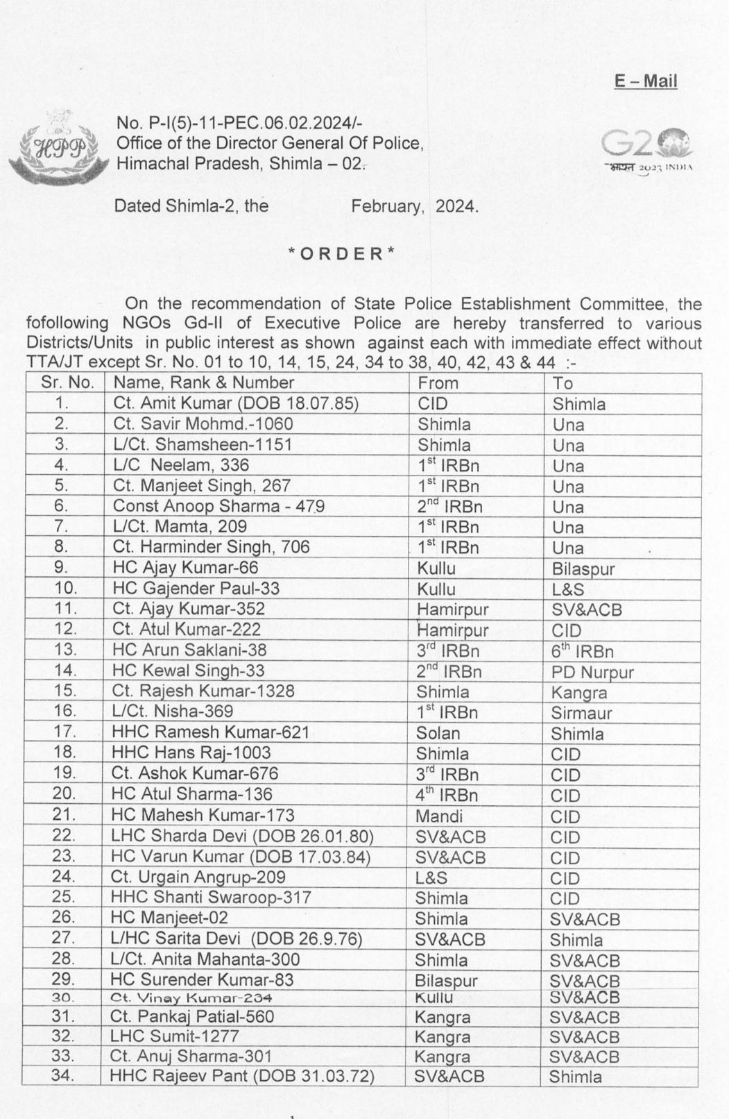 पुलिस महकमे में तबादलों की सूची देखें…